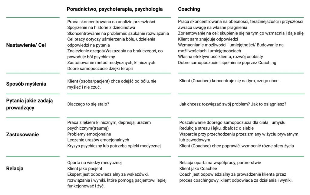 Różnica między poradnictwem, psychoterapią, psychologią i coachingiem?